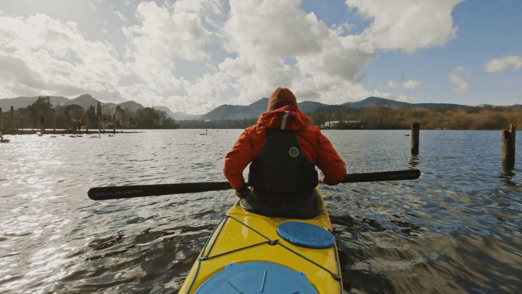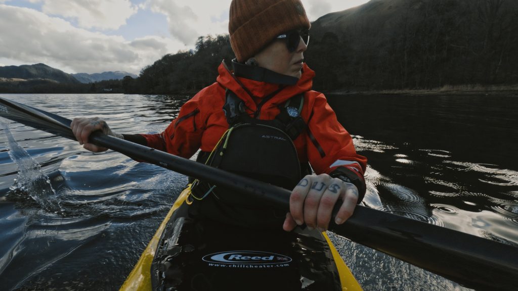 The following morning I was joined by Mark Rainsley, a fellow paddler I often meet up with in the Lakes, who was swiftly recruited into grip duties as I lashed a GoPro to his kayak to get some shots of myself paddling the same route from the previous day to cut into the footage. Yeah, sometimes I cheat a bit when making videos, that’s just movie magic for you.